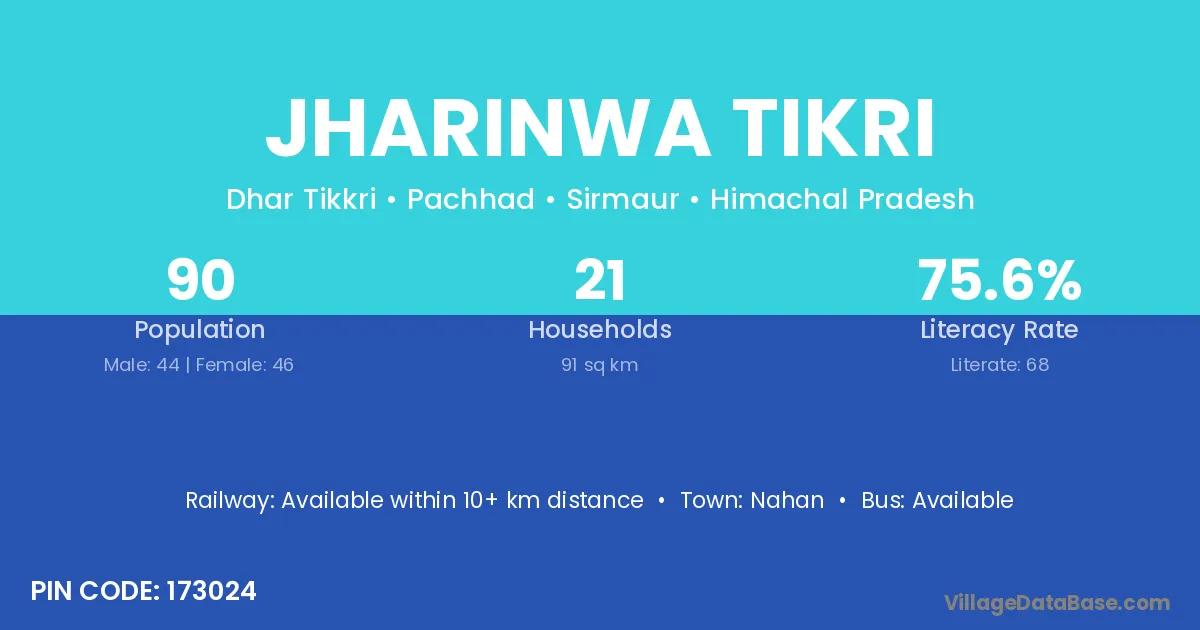 Nahan is the nearest town to Jharinwa Tikri village for major economic activities