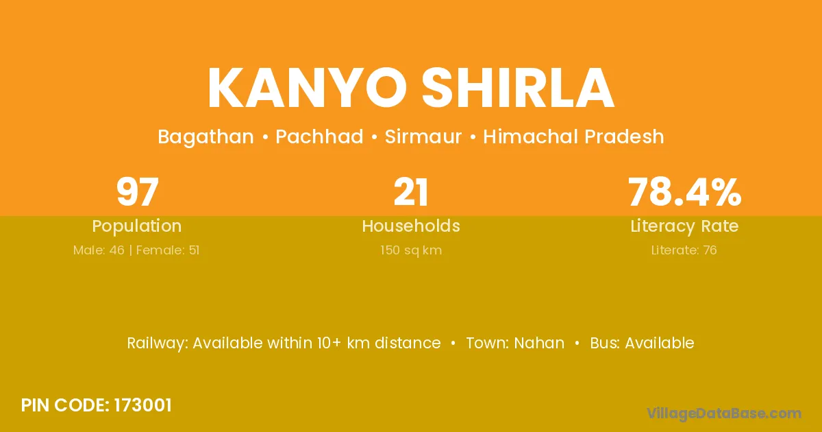 Nahan is the nearest town to Kanyo Shirla village for major economic activities