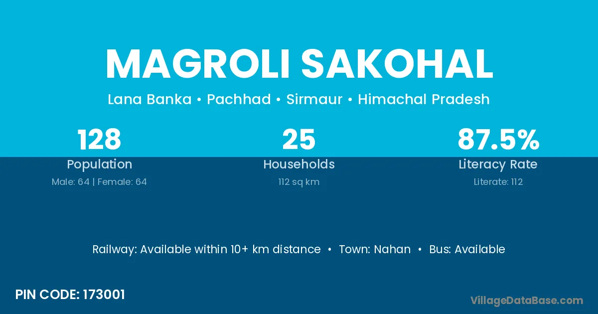Nahan is the nearest town to Magroli Sakohal village for major economic activities