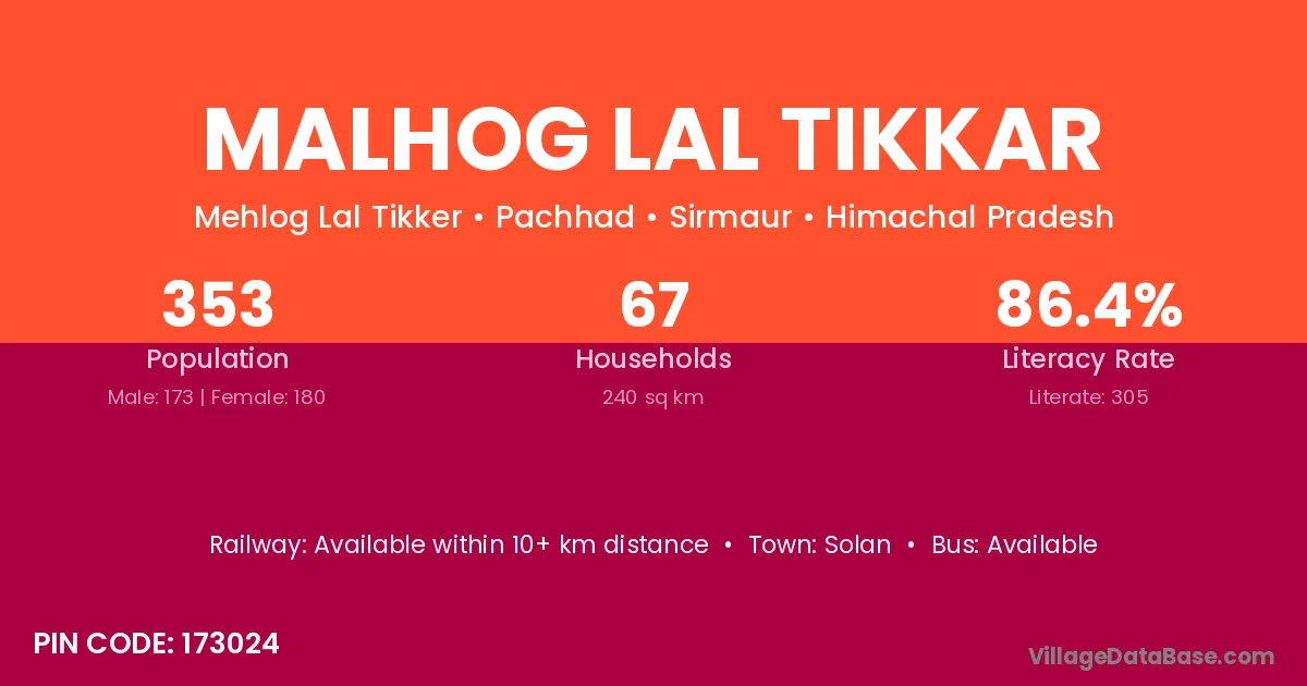 Solan is the nearest town to Malhog Lal Tikkar village for major economic activities