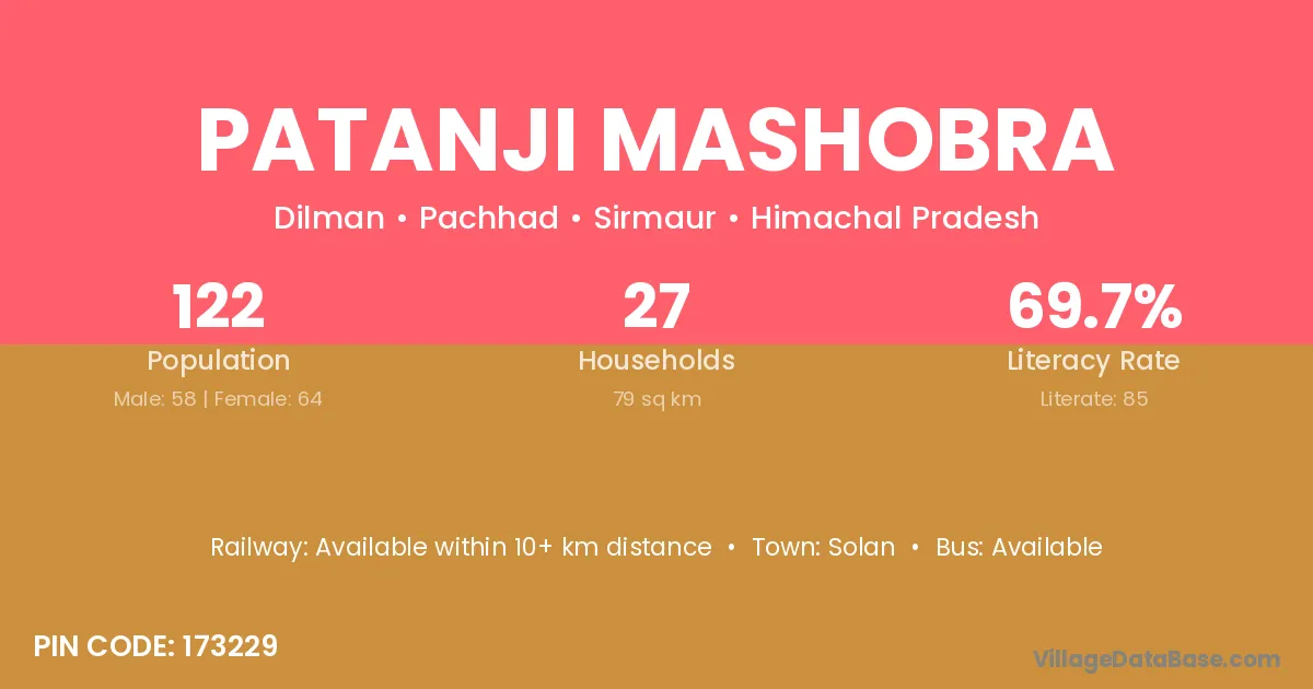Patanji Mashobra village has a total population of 122 people, of which 58 are males and 64 are females.