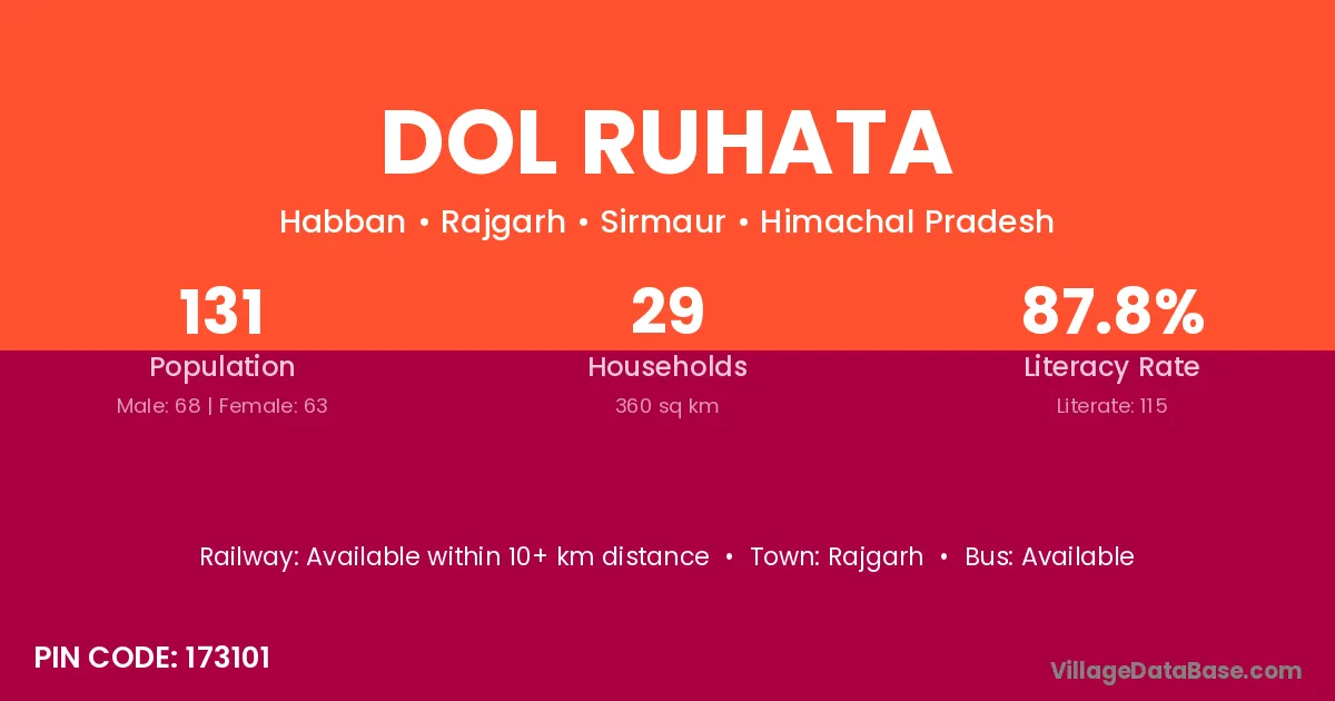 Dol Ruhata village has a total population of 131 people, of which 68 are males and 63 are females.