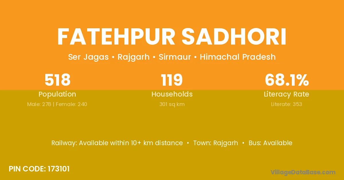 According to Census 2011 information, the village code of Fatehpur Sadhori village is 173101.