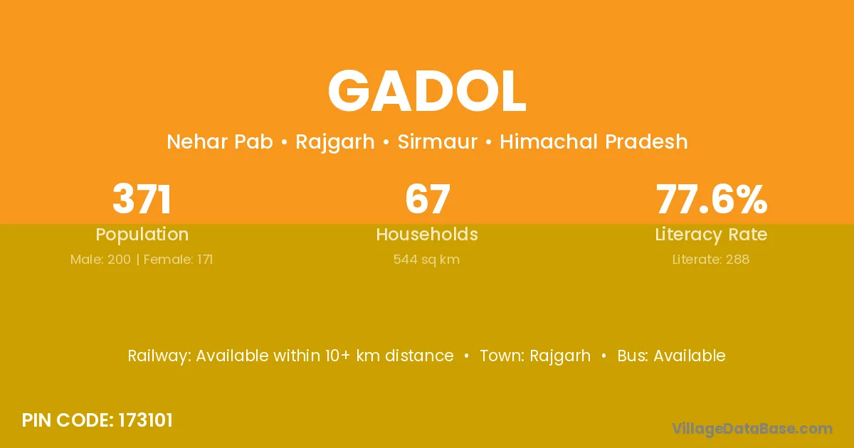 According to Census 2011 information, the village code of Gadol village is 173101.
