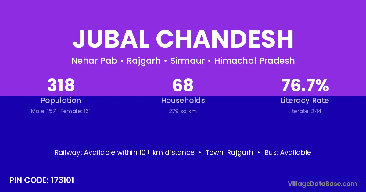 Jubal Chandesh village has a total population of 318 people, of which 157 are males and 161 are females.