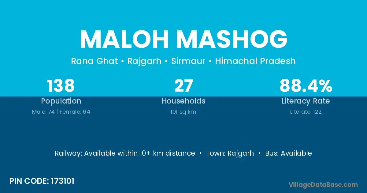 Rajgarh is the nearest town to Maloh Mashog village for major economic activities