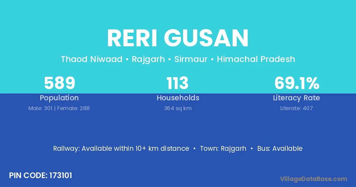 Rajgarh is the nearest town to Reri Gusan village for major economic activities