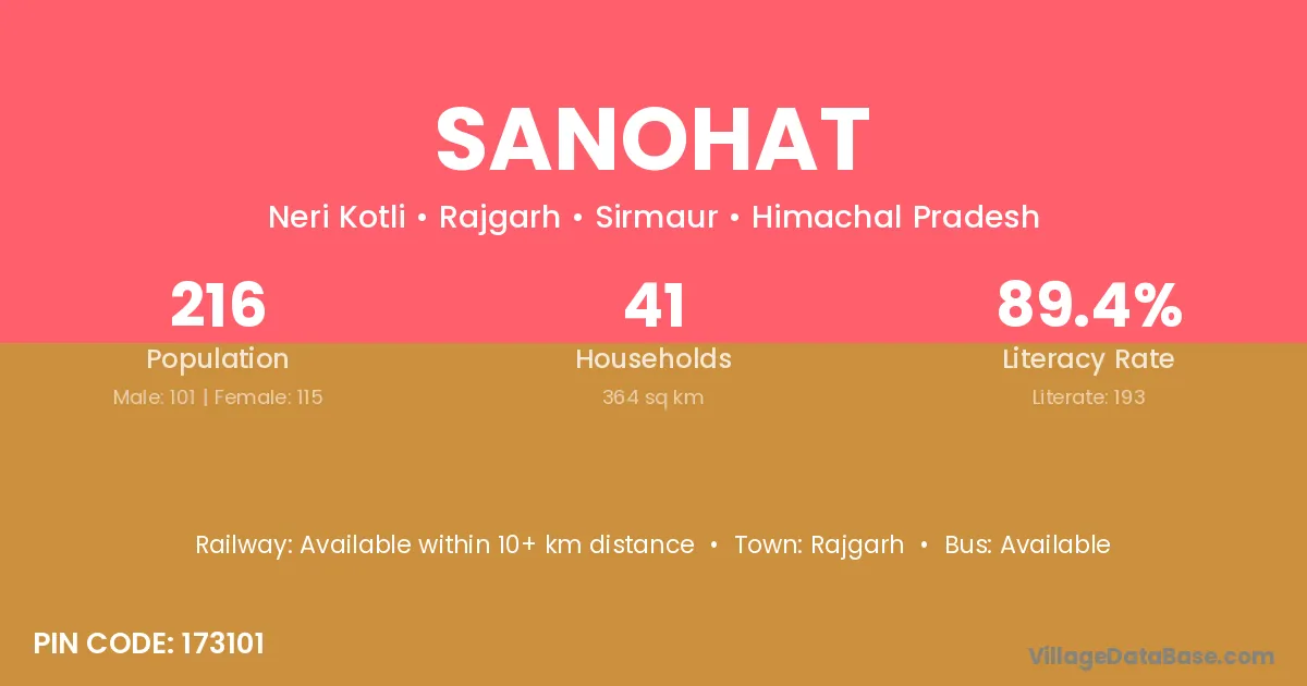Sanohat village has a total population of 216 people, of which 101 are males and 115 are females.