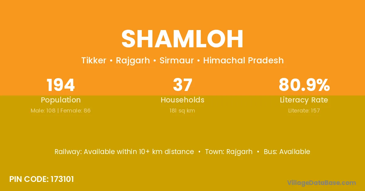 According to Census 2011 information, the village code of Shamloh village is 173101.