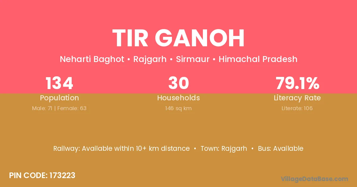 Rajgarh is the nearest town to Tir Ganoh village for major economic activities