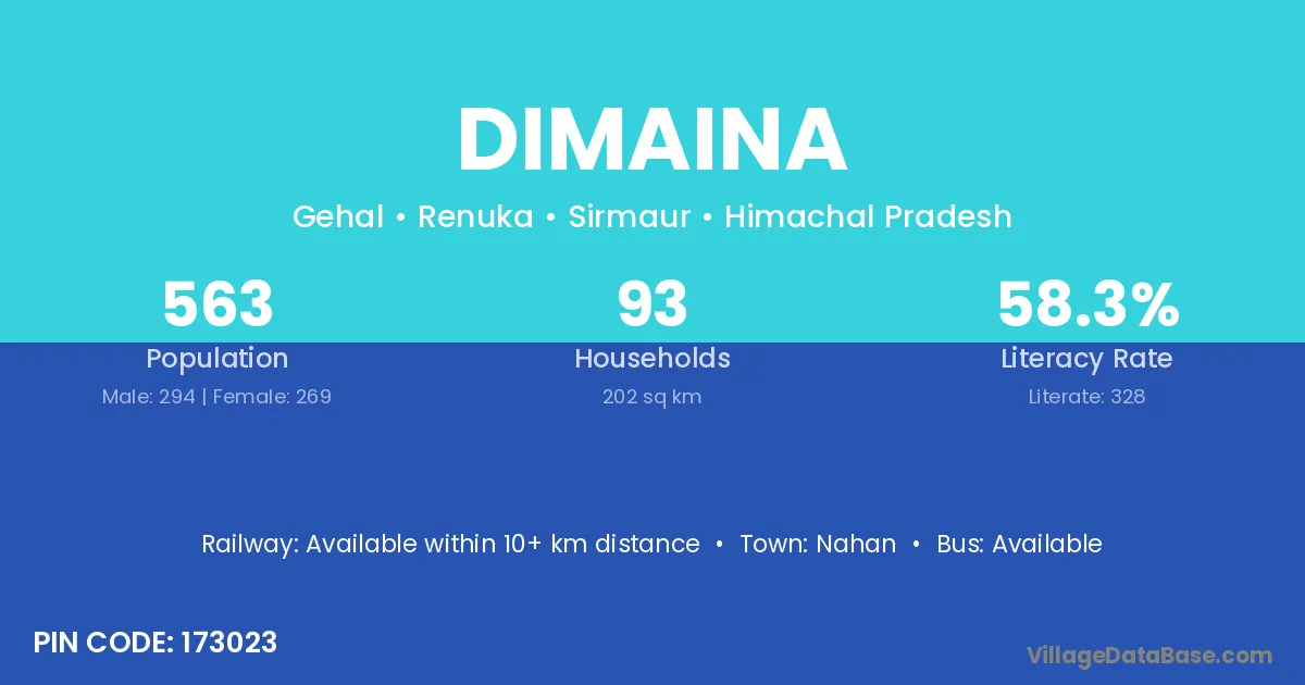 According to Census 2011 information, the village code of Dimaina village is 173023.