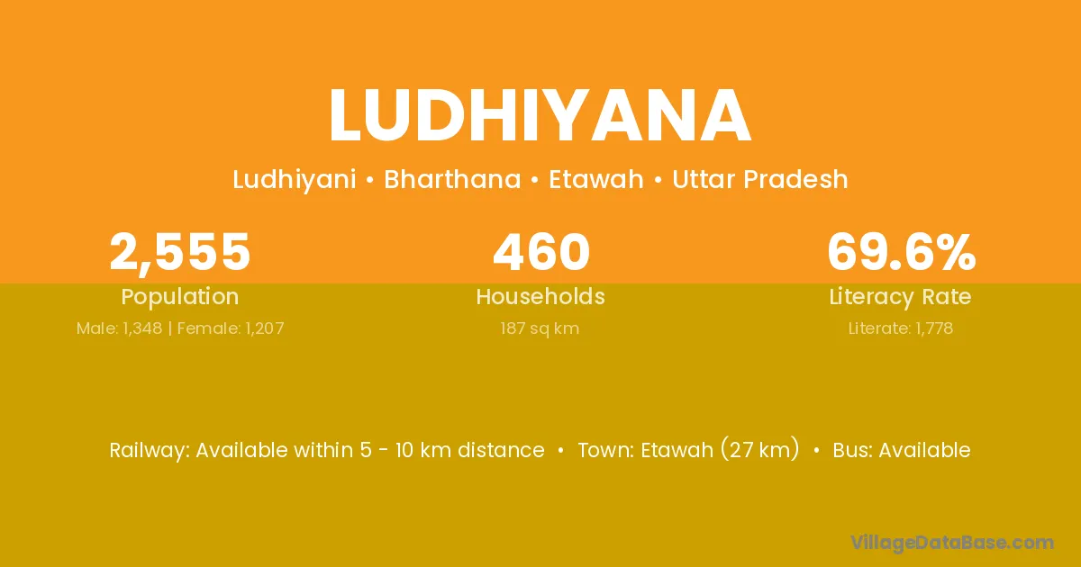 The literacy rate of Ludhiyana village is 62.64%. Male literacy stands at 67.63% and female literacy at 57.89%.