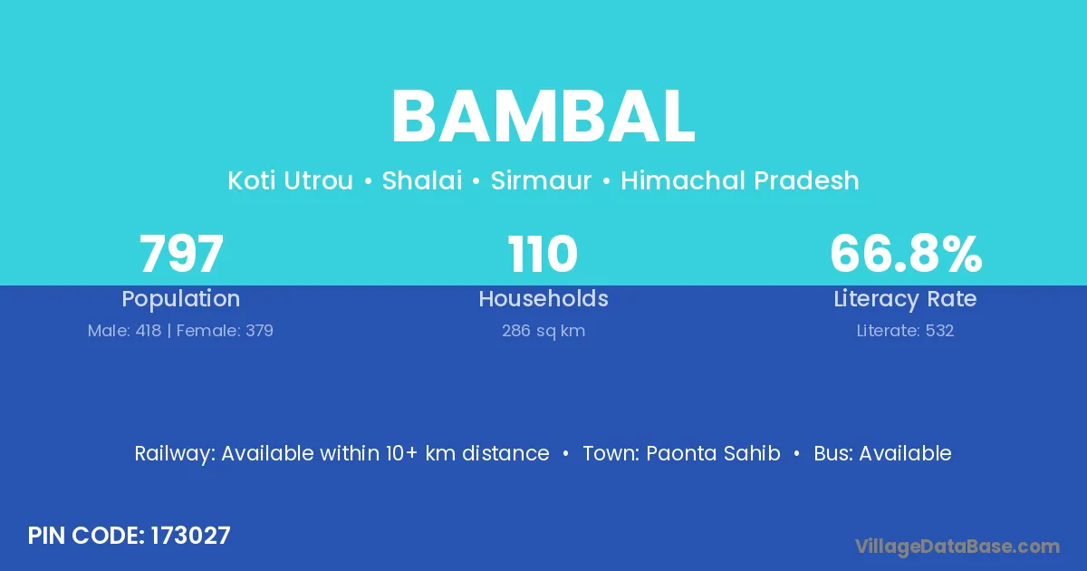 Paonta Sahib is the nearest town to Bambal village for major economic activities