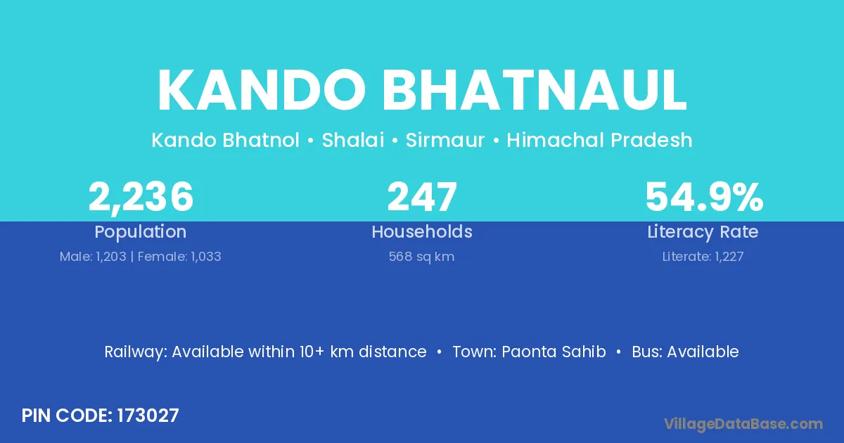 Paonta Sahib is the nearest town to Kando Bhatnaul village for major economic activities