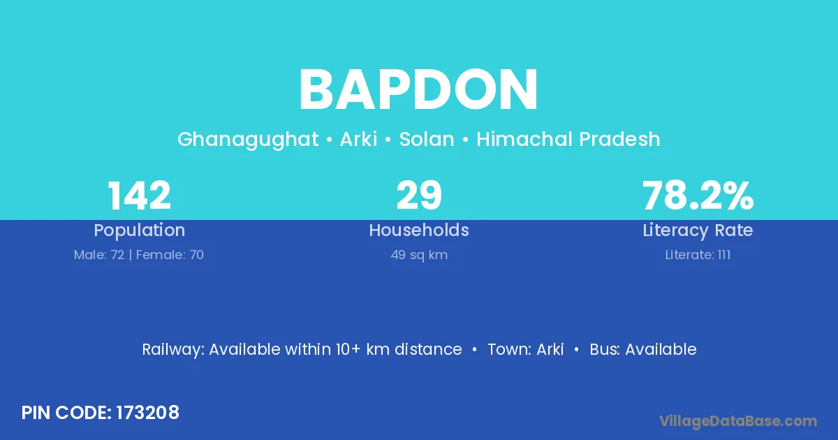 Bapdon village is located in the Arki Tehsil of the Solan district in Himachal Pradesh .