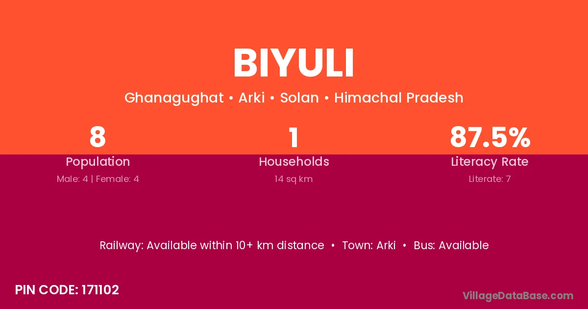 Biyuli village has a total population of 8 people, of which 4 are males and 4 are females.