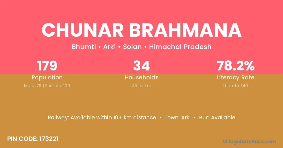 Arki is the nearest town to Chunar Brahmana village for major economic activities