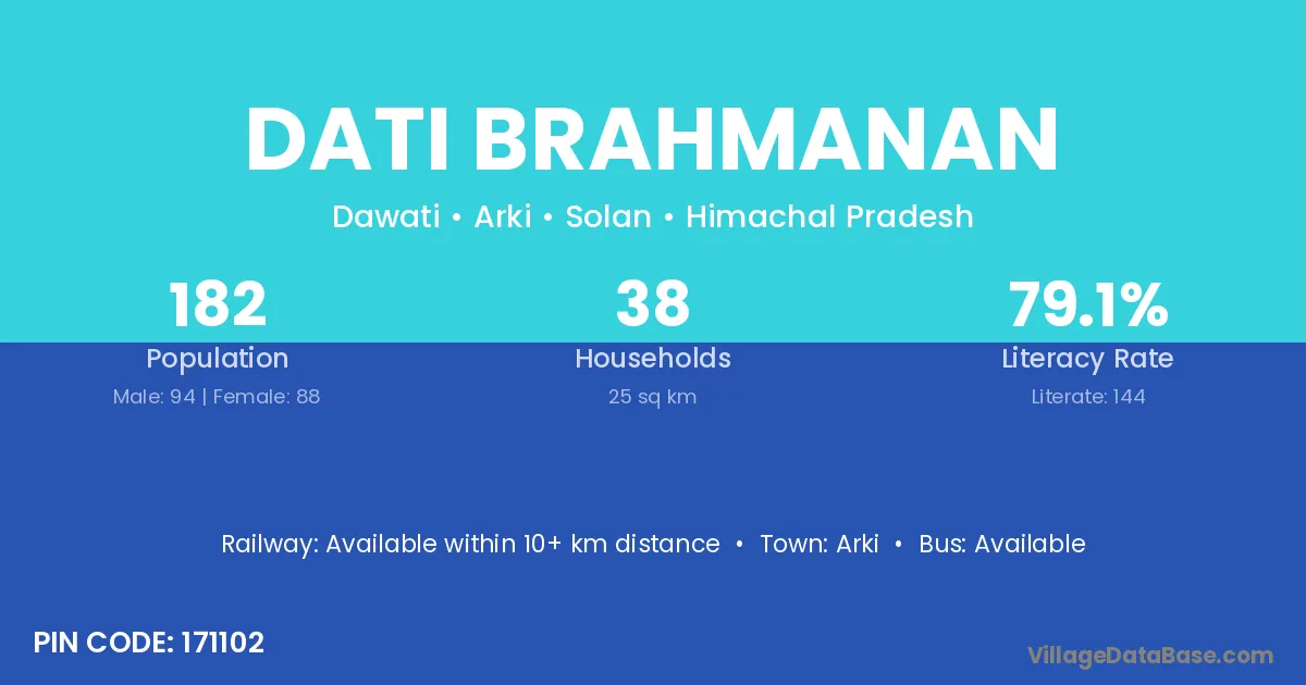 Dati Brahmanan village is located in the Arki Tehsil of the Solan district in Himachal Pradesh .