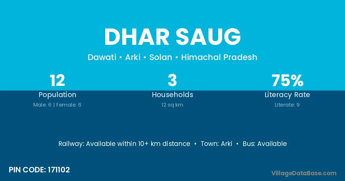 Arki is the nearest town to Dhar Saug village for major economic activities
