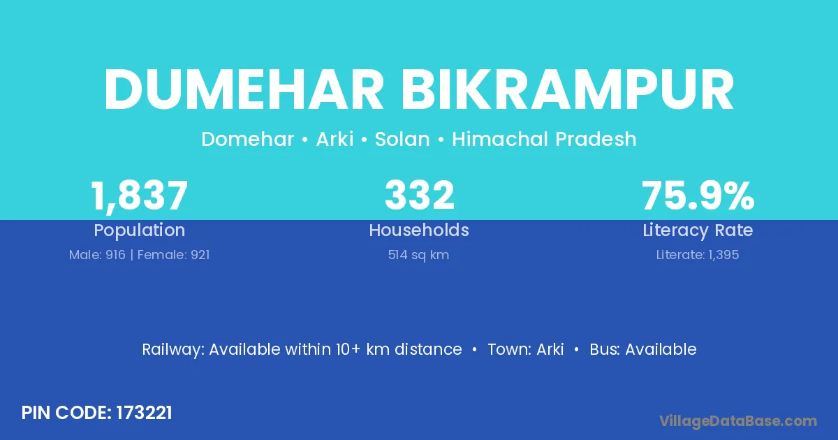 Arki is the nearest town to Dumehar Bikrampur village for major economic activities