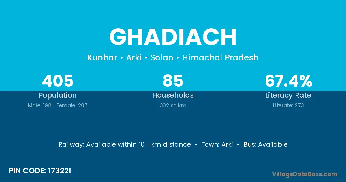Arki is the nearest town to Ghadiach village for major economic activities