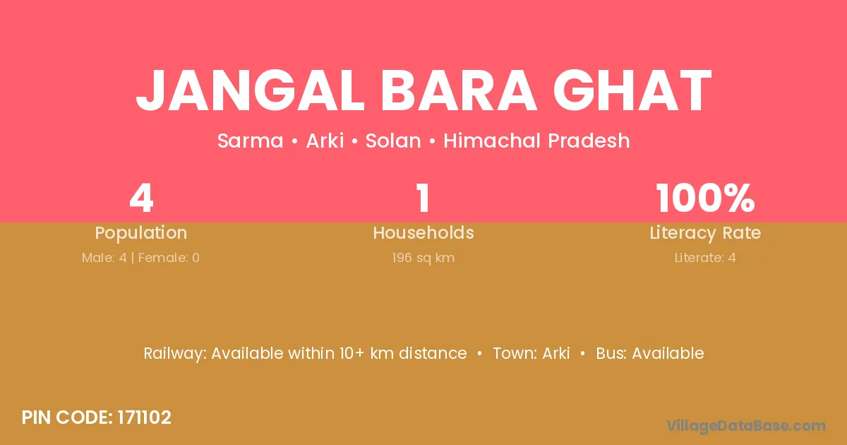 Jangal Bara Ghat village has a total population of 4 people, of which 4 are males and 0 are females.