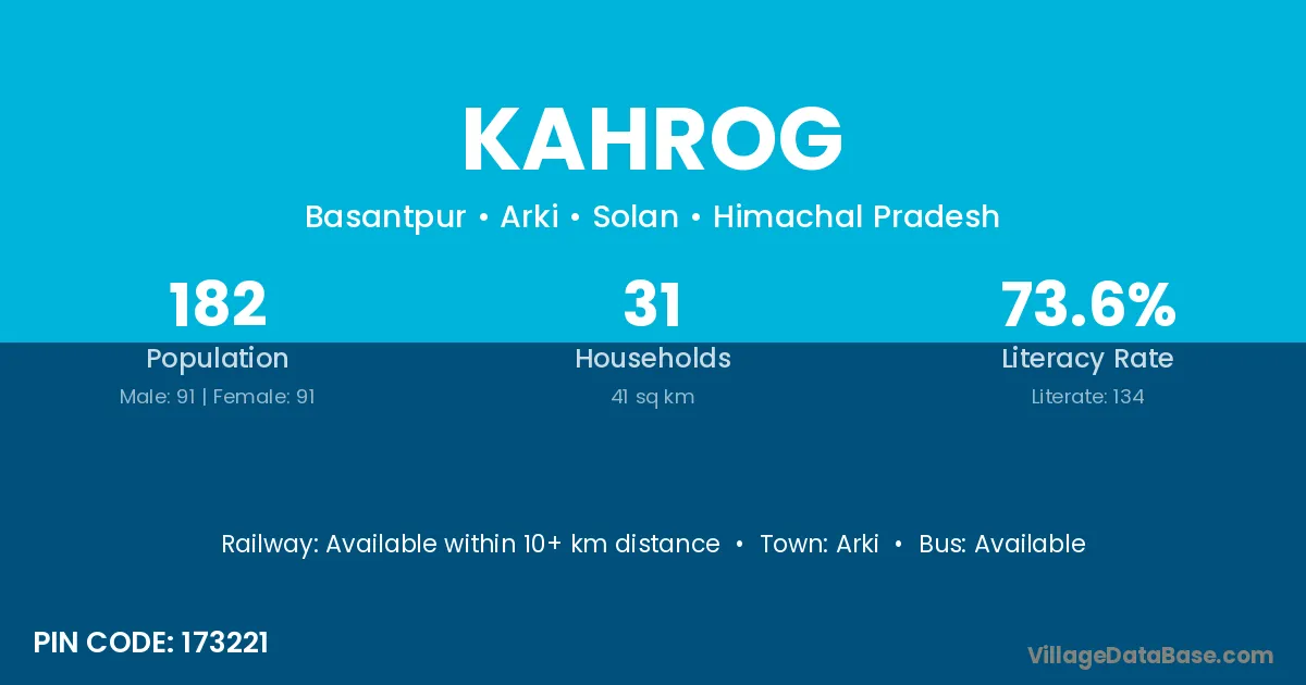According to Census 2011 information, the village code of Kahrog village is 173221.