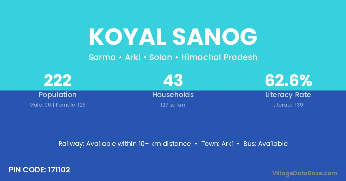 Arki is the nearest town to Koyal Sanog village for major economic activities