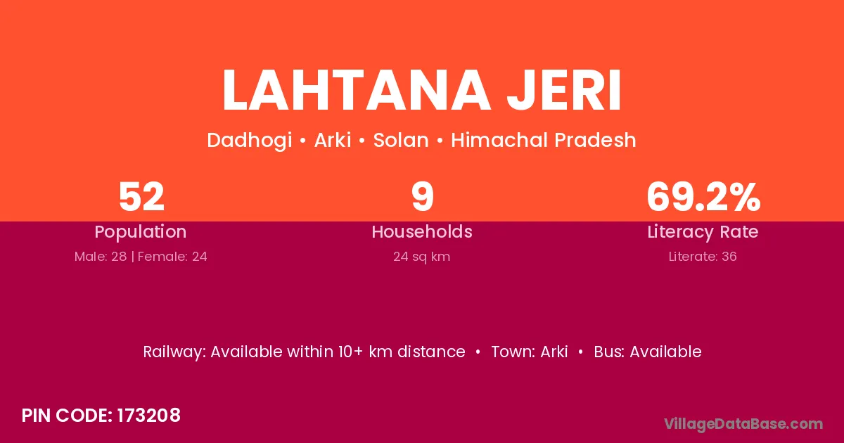 Arki is the nearest town to Lahtana Jeri village for major economic activities