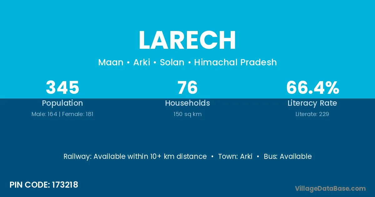 Larech village is located in the Arki Tehsil of the Solan district in Himachal Pradesh .