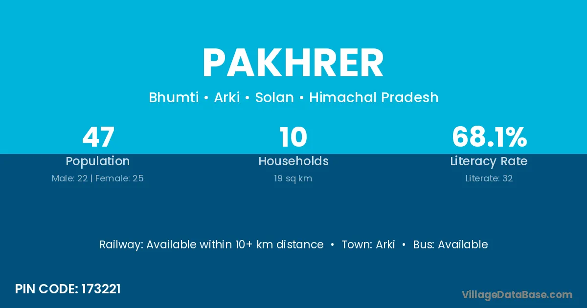 Arki is the nearest town to Pakhrer village for major economic activities