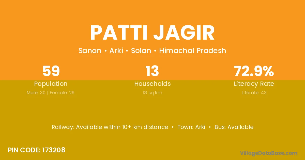 According to Census 2011 information, the village code of Patti Jagir village is 173208.
