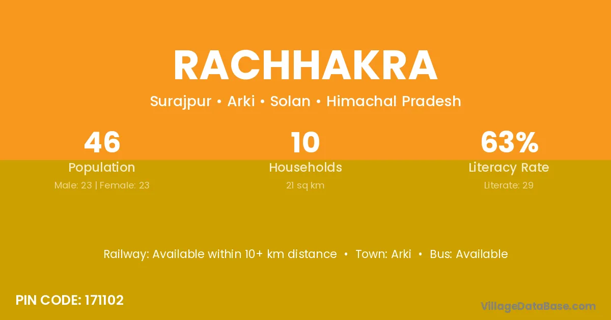 Arki is the nearest town to Rachhakra village for major economic activities