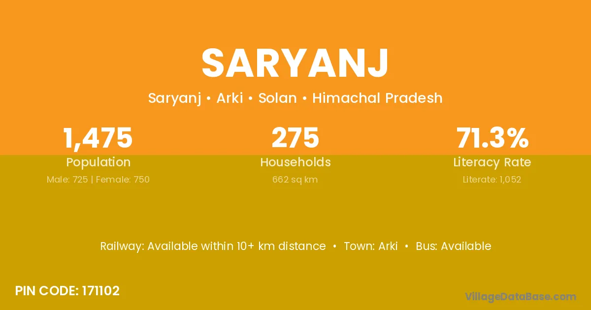 Arki is the nearest town to Saryanj village for major economic activities