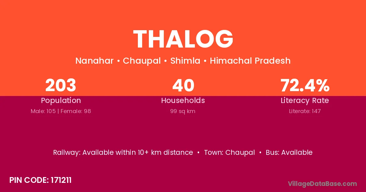 According to Census 2011 information, the village code of Thalog village is 173208.