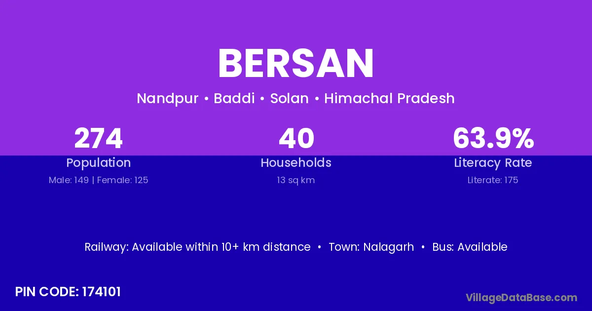 Nalagarh is the nearest town to Bersan village for major economic activities