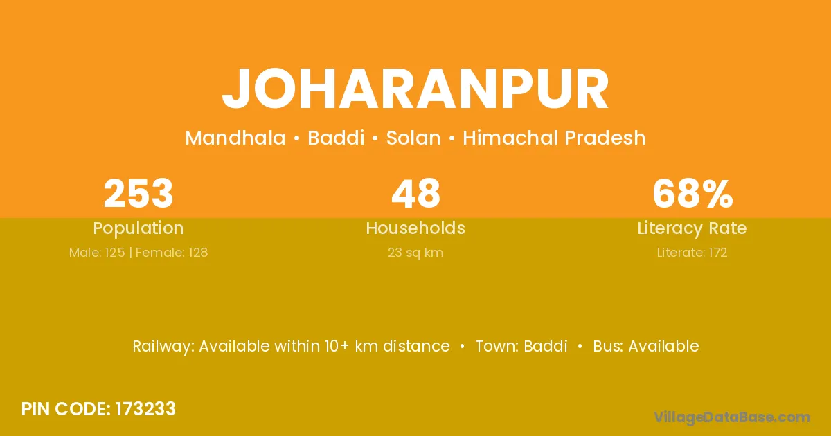 Joharanpur village has a total population of 253 people, of which 125 are males and 128 are females.