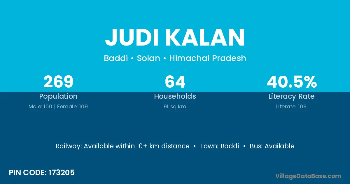 Baddi is the nearest town to Judi Kalan village for major economic activities