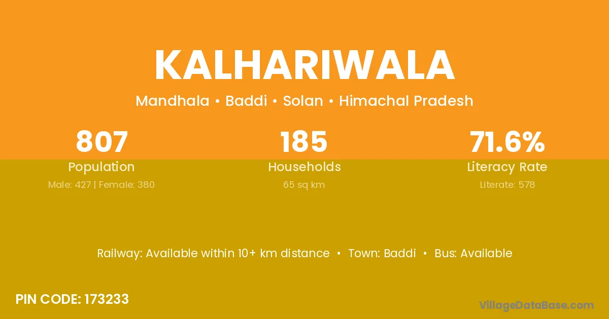 Baddi is the nearest town to Kalhariwala village for major economic activities