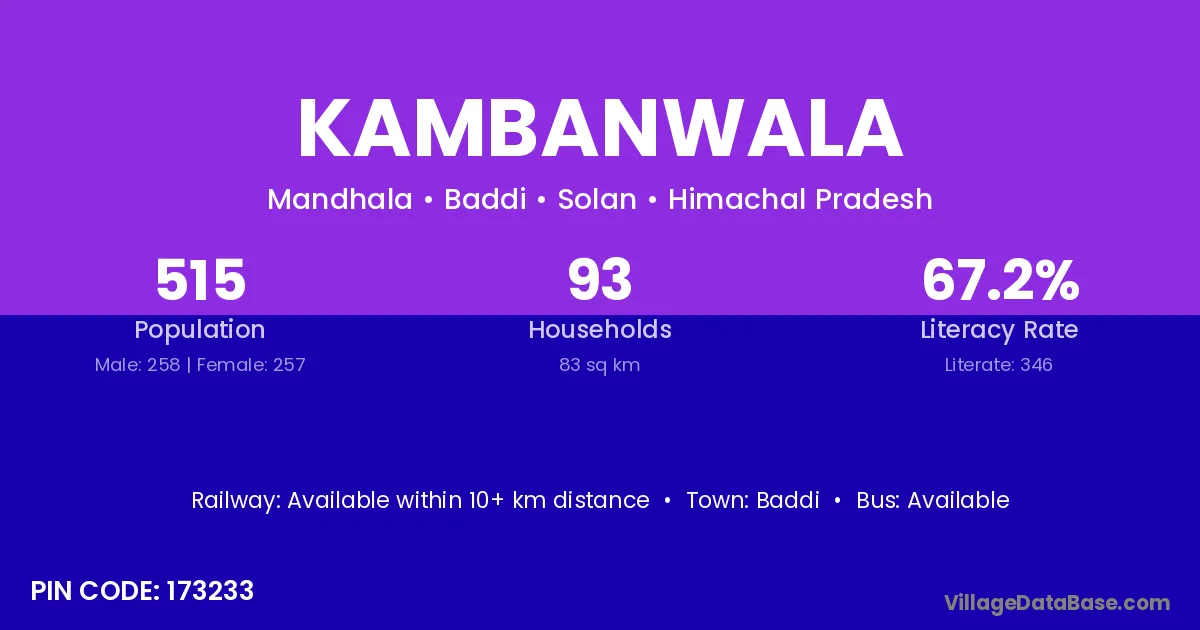 Kambanwala village has a total population of 515 people, of which 258 are males and 257 are females.