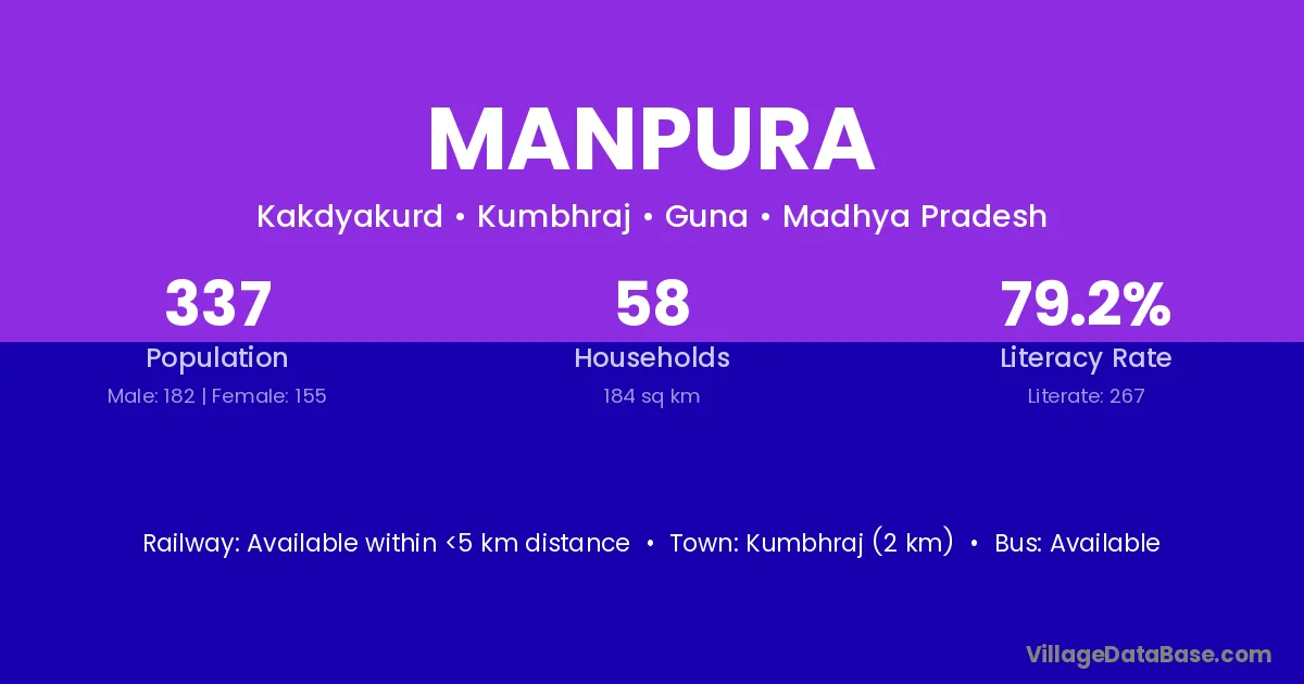Manpura village has a total population of 2,166 people, of which 1,192 are males and 974 are females.