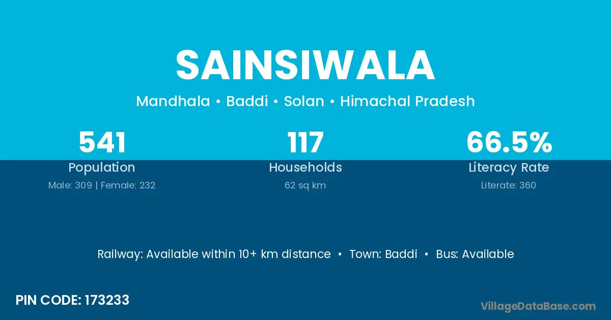 According to Census 2011 information, the village code of Sainsiwala village is 173233.