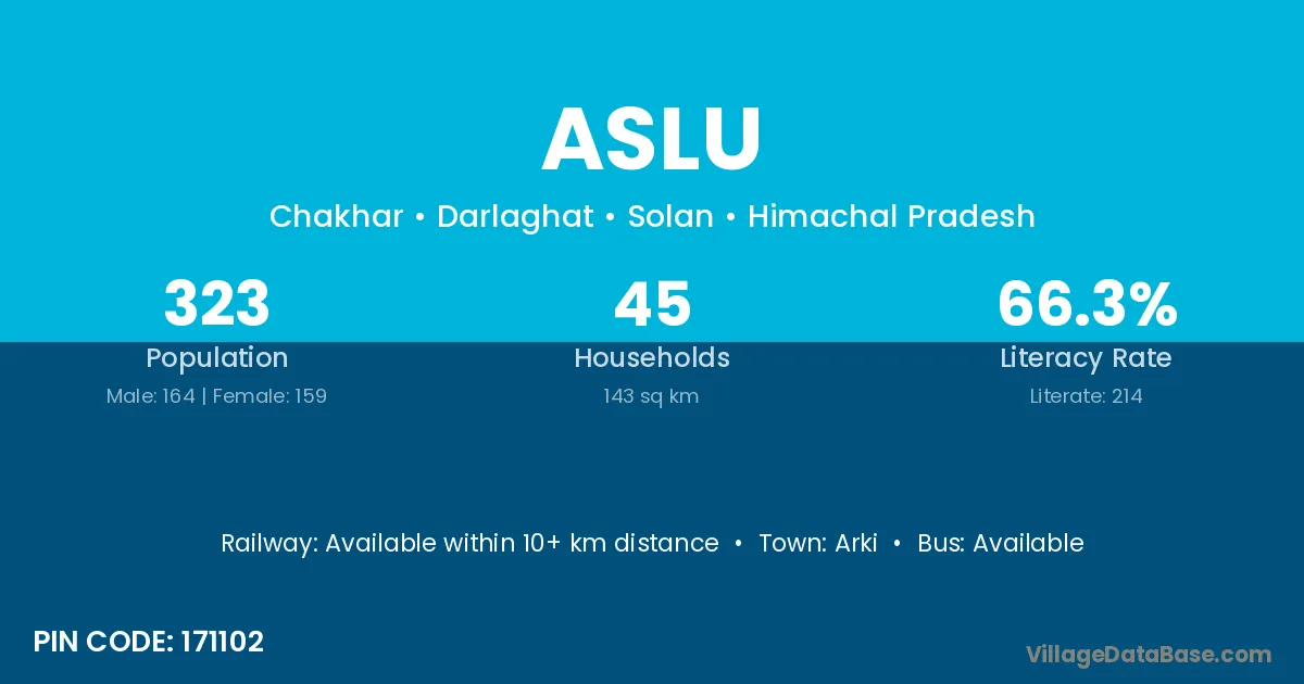 Aslu village is located in the Darlaghat Tehsil of the Solan district in Himachal Pradesh .