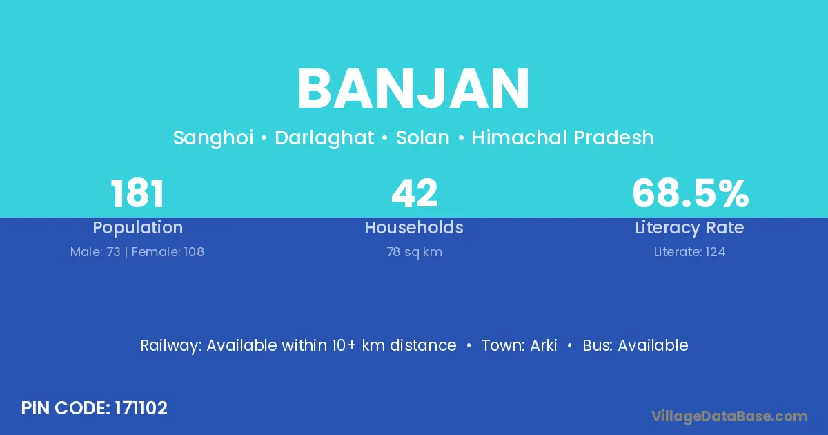 Banjan village has a total population of 181 people, of which 73 are males and 108 are females.