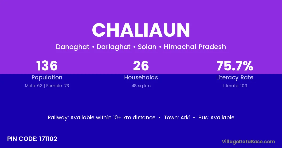 Chaliaun village has a total population of 136 people, of which 63 are males and 73 are females.