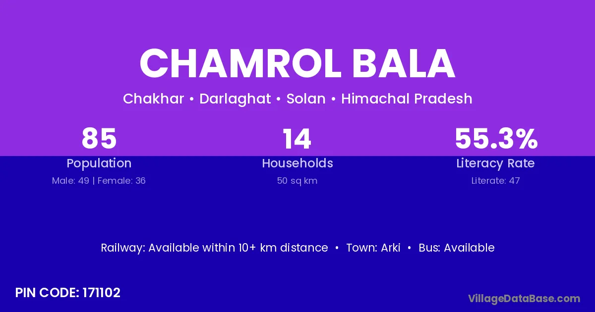 Arki is the nearest town to Chamrol Bala village for major economic activities