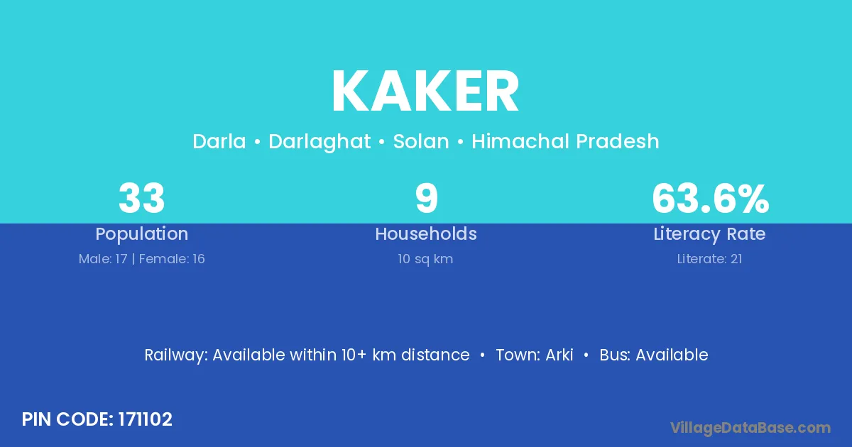 Arki is the nearest town to Kaker village for major economic activities