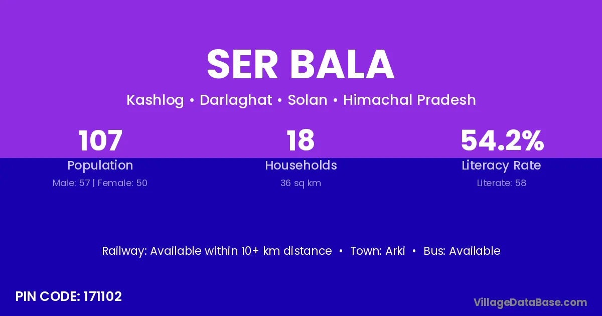 Ser Bala village is located in the Darlaghat Tehsil of the Solan district in Himachal Pradesh .