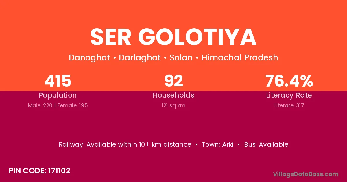 Ser Golotiya village is located in the Darlaghat Tehsil of the Solan district in Himachal Pradesh .