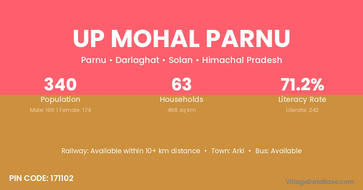 Up Mohal Parnu village has a total population of 340 people, of which 166 are males and 174 are females.